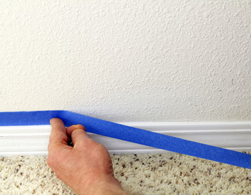 - Collez du masking tape sous les lamelles. Appuyez-le fermement contre le mur avec une truelle et un rouleau.