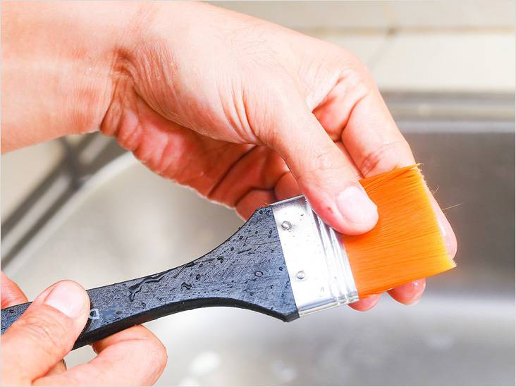 L'option la plus courante est un pinceau. Vous devez prendre un produit avec un poil naturel dont la largeur ne dépasse pas celle d'une lamelle. Le liquide doit être saisi au minimum avec la pointe même du pinceau, puis le répartir immédiatement en mouvements horizontaux, en frottant dans toutes les irrégularités. La section suivante doit être recouverte de la capture de la précédente de 5 à 6 cm afin que le revêtement soit uniforme et beau.