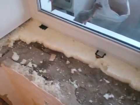 - Après 20 minutes, de la mousse de polyuréthane est appliquée à la jonction du rebord de la fenêtre avec le cadre, puis 7 à 10 kg supplémentaires de charge sont installés sur la structure.