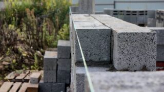 - Lorsque la maçonnerie atteint les futures ouvertures, des cavaliers sont installés à partir du coin. Les parpaings sont déjà empilés dessus.