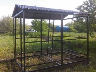 Il est préférable de faire un gazebo avec un barbecue en métal séparé. La forme d'une telle structure est ronde, rectangulaire ou carrée. Ils le choisissent en tenant compte de l'emplacement du barbecue. Pour son installation, vous devez assembler un cadre complet. Il est préférable de souder des éléments métalliques ensemble.