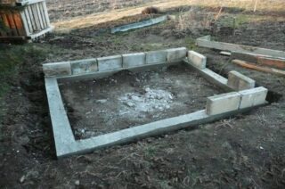 Le gazebo en métal est léger, il n'est donc pas nécessaire de construire une base solide. Il est préférable d'utiliser une fondation en blocs de béton. Il s'avère peu coûteux, vous pouvez le construire vous-même. Un trou est creusé sous chaque élément.