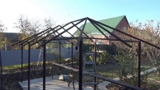 Une structure métallique pour un chalet d'été est la meilleure option qui ne nécessite pas beaucoup d'efforts et d'argent. Avec la fabrication correcte du dessin et la sélection du matériau, vous pouvez installer vous-même un tel belvédère en 1 à 2 jours.