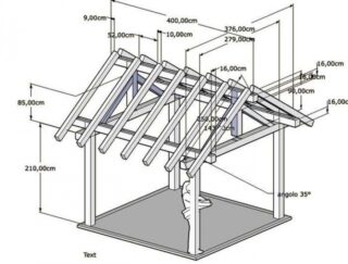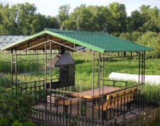 La forme peut être différente, la plus simple est représentée par quatre poteaux et un toit. De telles structures sont réalisées sans fondation ou de petites colonnes sont coulées sous les supports.