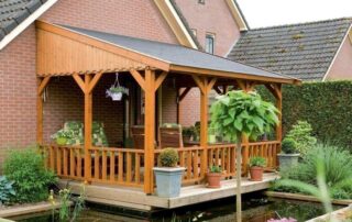 Le gazebo-extension de la maison à la campagne est le plus souvent en bois. Ce matériau est bon marché, facilement disponible et très facile à traiter. L'installation est rapide. En même temps, les possibilités décoratives de l'arbre sont très grandes.