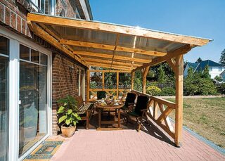 Le gazebo attaché à la maison est le plus souvent équipé d'un toit en pente. C'est rationnel: ses dimensions ne sont pas grandes et l'installation d'une pente est beaucoup plus facile qu'une structure plus complexe.