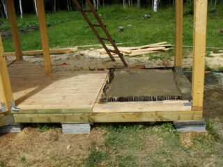Le sol est en bois ou en béton est coulé. Pour la finition, on utilise du grès cérame résistant aux températures négatives ou aux planches rabotées.