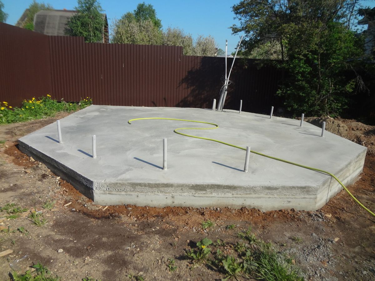 - La dalle est une plate-forme remplie de béton. Adapté au soulèvement du sol, les mouvements ne détruiront pas la structure, mais ne pourront que temporairement élever l'un des bords à une faible hauteur. Il est préférable de choisir ce type de base si vous devez construire vous-même un gazebo avec un barbecue en brique.