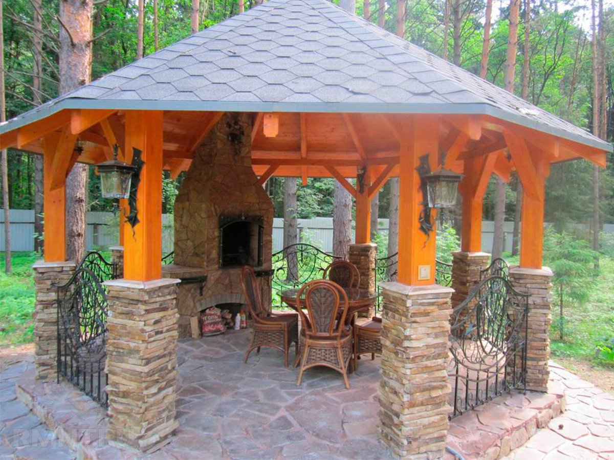 Souvent, ils choisissent l'option d'un belvédère avec un espace barbecue à l'extérieur de la zone couverte. Avantages du projet :