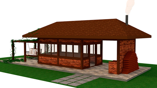 La construction d'une structure de protection couverte aidera à éliminer les problèmes. Pour les loisirs toute l'année, ils construisent un belvédère d'hiver avec barbecue, équipé d'écrans amovibles sur les murs et de fenêtres vitrées.