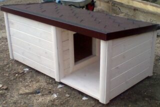 - Un chenil avec deux pentes sur le toit protège mieux des précipitations, car l'eau s'écoule plus rapidement et la neige roule du plan incliné.