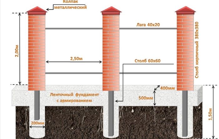 Vous devez décider de la taille de la clôture - épaisseur et hauteur. Une clôture décorative basse (1 m ou moins) en demi-brique semble tout à fait adéquate, mais la clôture de protection doit être réalisée en posant au moins un élément complet. Il est préférable dans ce cas de réaliser une structure d'une brique et demie à deux briques. La hauteur doit être d'au moins 3 m.