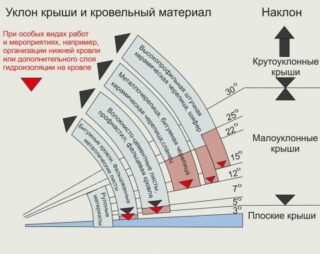 - Un facteur important est le choix de l'angle d'inclinaison. La valeur est déterminée par les conditions météorologiques, le choix du matériau de toiture en dépend.