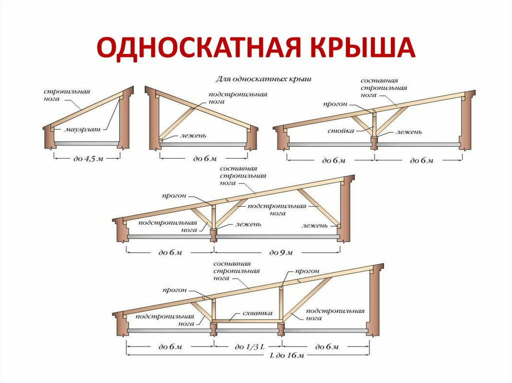 La résistance et la durabilité du toit sont influencées par sa taille. Avec une longueur de portée allant jusqu'à 4 mètres, la jambe de chevron repose uniquement sur le Mauerlat. Si la longueur de la course est plus grande, ils placent les bancs près du mur principal, si jusqu'à 11 m, les bancs sont posés au centre de la projection du chevron.