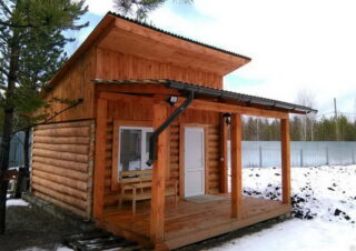 Un toit en pente est un plan plat placé à un certain angle, parfois assez raide. Il s'agit d'une option polyvalente pour le chevauchement de petites dépendances et d'unités utilitaires. Il convient tout à fait à un petit bain constitué d'une bûche ou d'un bar.
