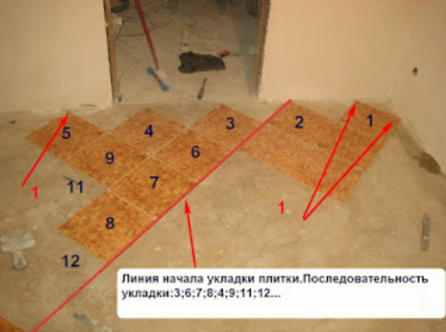 Les fabricants de carreaux de céramique recommandent de commencer par le centre. Dans les petites pièces (salle de bain, couloir, etc.), il peut être monté depuis le coin le plus éloigné.