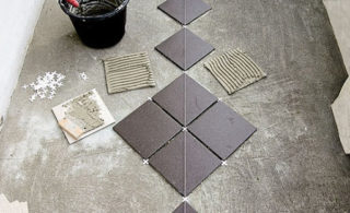 - un mélange adhésif est appliqué à la base et au dos du carreau de céramique ;
