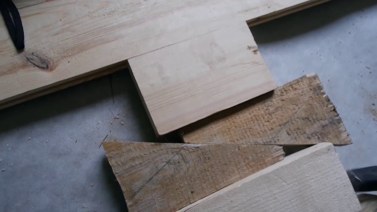 - d'autres éléments sont fixés avec du matériel à un angle par rapport à la crête, l'assemblage des planches courtes se fait sur une bûche;