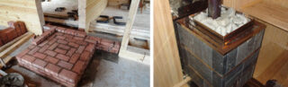 Comment imposer une brique sur le poêle dans le bain de vos propres mains du côté du hammam et du dressing est décrit sur de nombreux forums de construction. La bonne technologie est choisie en tenant compte du poids du poêle et du revêtement, de la superficie du hammam et de ses propres capacités.