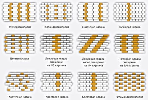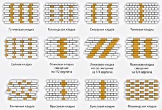 Avant d'imposer des briques décoratives à la maison, vous devez choisir une méthode de maçonnerie. Certaines options impliquent l'utilisation de plusieurs matériaux de couleurs différentes. Cependant, ils sont difficiles à réaliser et nécessitent une certaine habileté. Les plus courantes sont les méthodes de maçonnerie suivantes:
