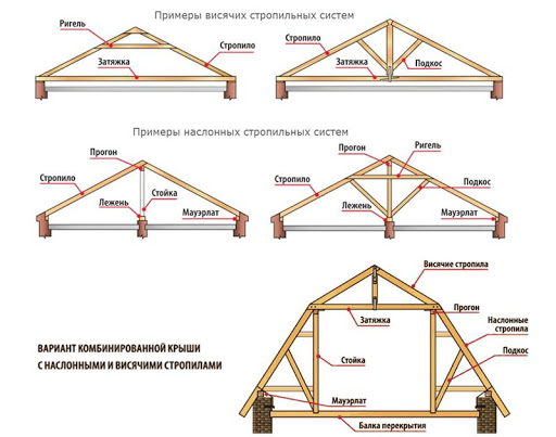Lors de la construction d'un toit à plusieurs niveaux à pignon, les frontons sont réalisés sous la forme d'un trapèze. Avant d'aménager le toit, un système de chevrons est monté, qui remplit la fonction de structure de support. Il est réalisé sous forme de chevrons inclinés (en couches) ou de triangle renforcé. Dans le second cas, le système est dit « suspendu ».