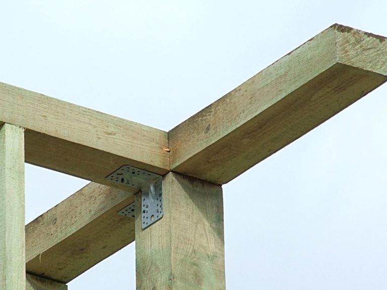 - Aux coins. Après le nivellement, les supports et les cerclages sont solidement fixés avec des pièces en acier.