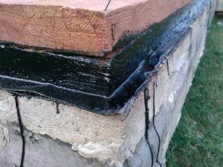 - Application d'imperméabilisation entre le béton et le bois.