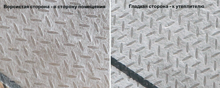 Au départ, vous devez décider de quel côté mettre la toile. Il doit être lisse en bas et rugueux en haut. Habituellement, de telles inscriptions sont faites par le fabricant sur le matériau.