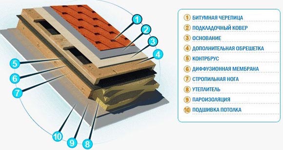L'installation des bardeaux est la dernière étape du processus de construction du toit, dont la majeure partie est la préparation de la base pour la pose du gâteau de toiture. C'est une structure composée de plusieurs couches interconnectées, conçues pour assurer le bon fonctionnement du grenier. Le niveau technologique assure une bonne ventilation, un drainage des condensats, un bon échange thermique dans l'espace sous le toit. Les tuiles sont une couche de finition qui remplit une fonction esthétique et imperméabilisante dans un système de revêtement multicouche complexe.