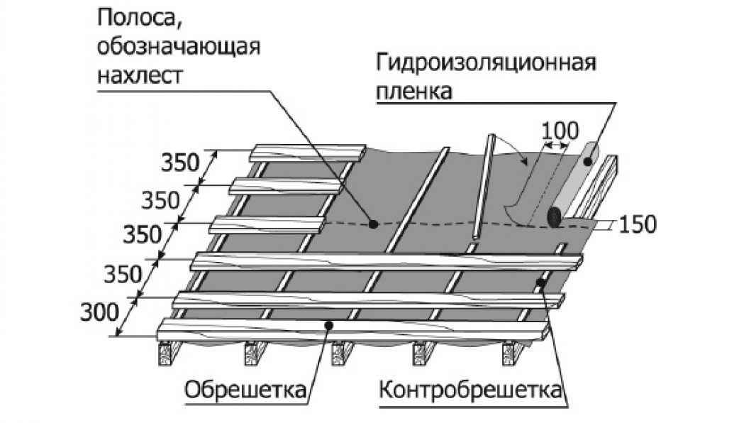 Si la distance entre les chevrons est standard de 60 à 80 cm, des planches de 25 mm d'épaisseur et de 100 à 150 mm de large sont utilisées pour le treillis. Dans les cas où les chevrons sont situés à de grandes distances, du bois d'une épaisseur de 32 ou 50 mm est choisi pour le cadre.