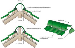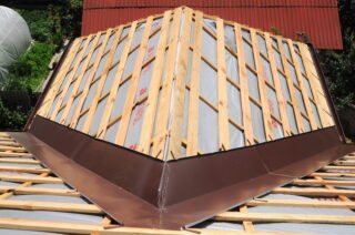 La différence dans l'installation du revêtement sur des toits avec un nombre de pentes différent réside dans la conception des endroits où les tuiles jouxtent le revêtement. Sur un toit en pente, le porte-à-faux inférieur et le côté supérieur sont encadrés d'une bande de visière. Dans le même temps, le sommet du toit à deux versants est protégé par un élément de faîtage.
