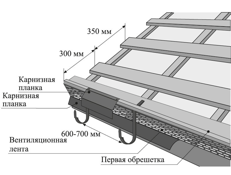 L'étape de fixation des planches avec des vis autotaraudeuses est de 30 à 40 cm. S'il est nécessaire de poser deux éléments de corniche, un chevauchement de 10 à 15 cm est effectué.