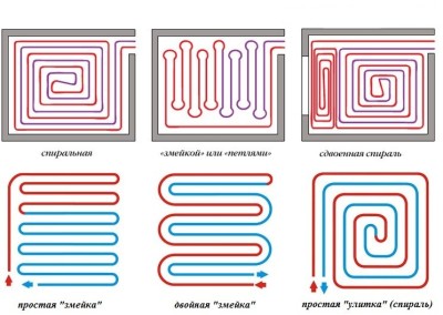 - Serpent. L'option la plus populaire, qui offre une couverture complète de l'ensemble de l'avion et contourne les endroits recouverts de meubles. Le système est universel et peut être utilisé dans des pièces de toute configuration et de toute taille. Sur de grandes surfaces, deux lignes ou plus sont posées.