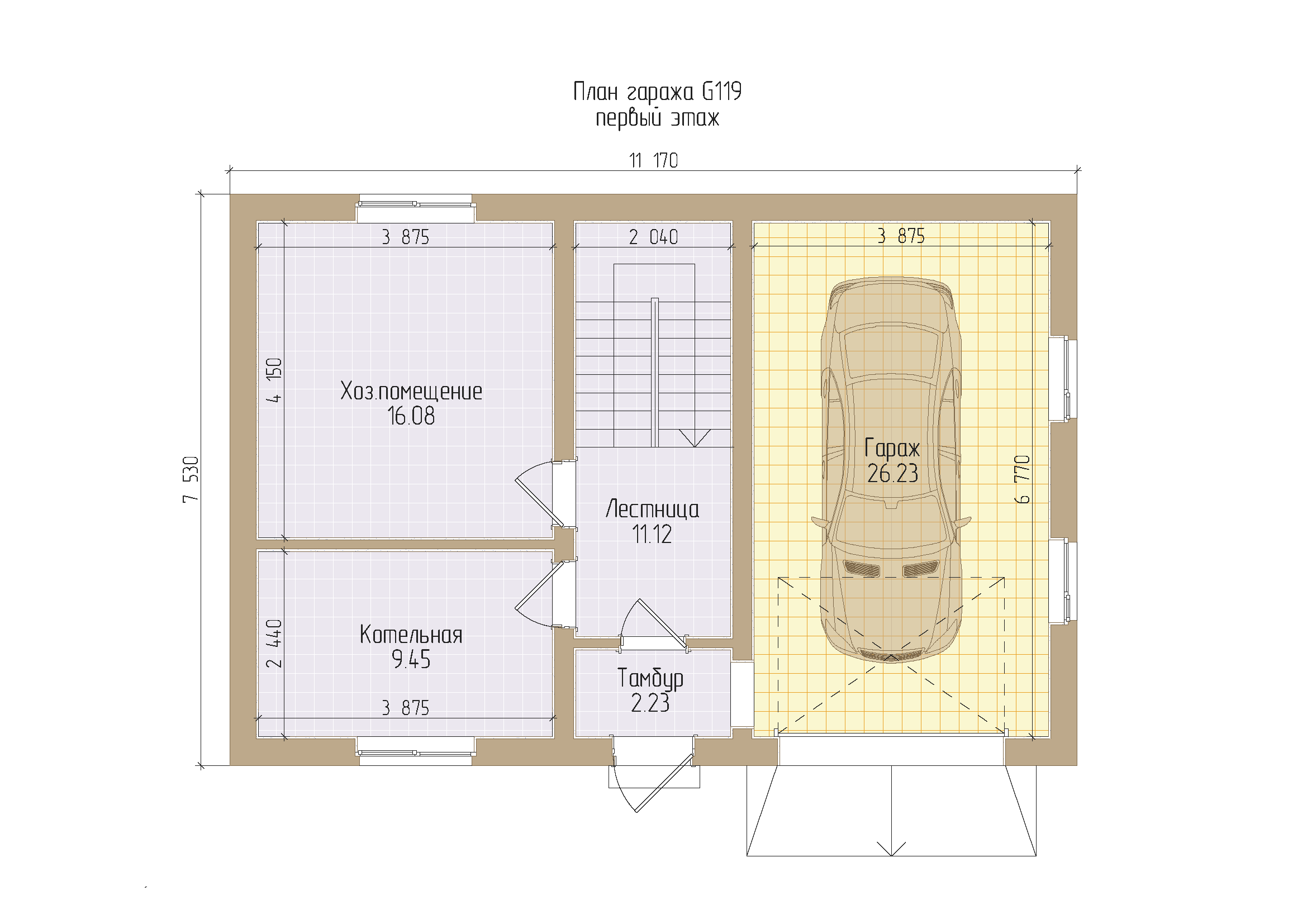 - Calcul des tailles. Pour une voiture de tourisme standard, la norme est une pièce de 4x6x2,5 mètres. Pour une jeep, ajoutez encore 50 cm de chaque côté. Si le bloc de garage est conçu pour deux voitures, il sera plus pratique de les placer côte à côte que dans une colonne. Lorsque vous envisagez de donner une partie du garage pour un entrepôt ou un atelier, vous devez ajouter au moins 100 cm d'un côté pour l'équipement et le mouvement du maître.