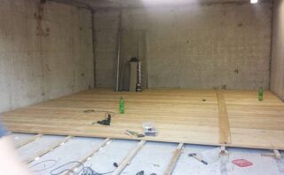 - Pose d'un parquet sur un socle en aggloméré et contreplaqué