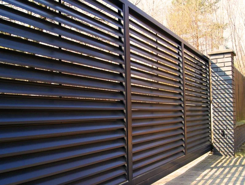 - Acier - les lamelles sont très durables, légères, ne craignent pas les changements de température. L'acier est sujet à la corrosion, la clôture doit donc être peinte avec des polymères ou des composés en poudre. Une telle clôture dure beaucoup plus longtemps.