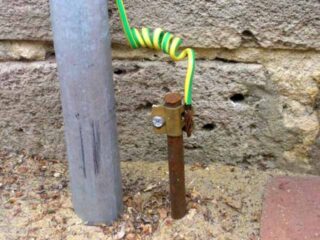 - Ligne aérienne - le câble est monté sur des poteaux à une hauteur de 3,5 m. Le fil est fixé sur le support au mur, puis jeté à travers le mur à l'intérieur et acheminé vers le blindage. Prenez un fil d'aluminium à deux conducteurs autoportant.
