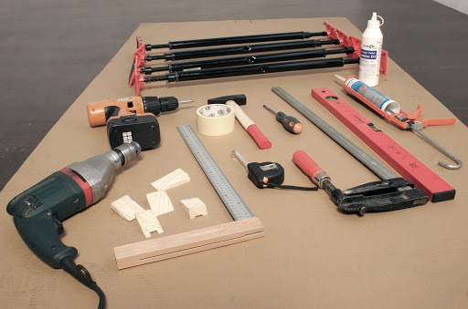 - une scie à main, un marteau, une boîte à onglets, une scie à métaux pour le bois, une scie à bout peut également être nécessaire ;