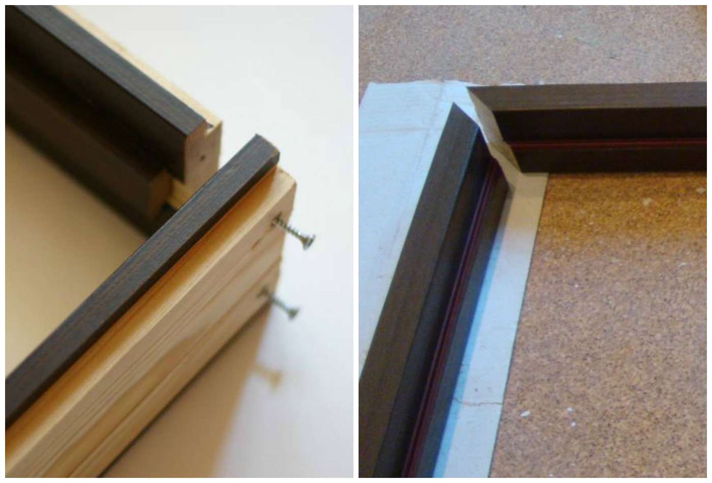 - Sur la traverse, la largeur de l'ouverture est marquée et, selon les marques, elles sont sciées à 45 degrés des deux côtés.