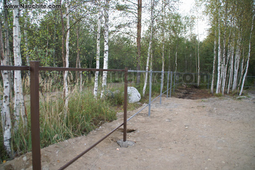 - Une tranchée peu profonde est creusée entre les poteaux, dans laquelle une base en brique est posée. Cette opération est facultative, mais une telle clôture sera plus solide.