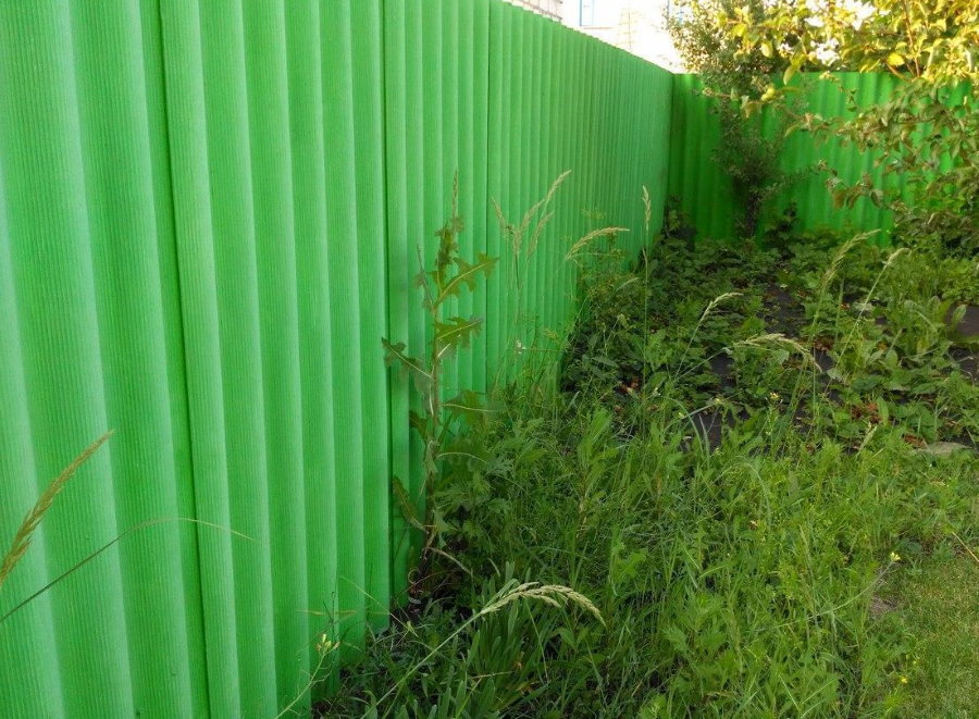 La clôture en ardoise est une solution populaire. Le matériau est abordable, léger, facile à installer. Il existe maintenant d'autres options qui satisfont aux mêmes exigences, mais la disponibilité de l'ardoise décide toujours de cette question en sa faveur.