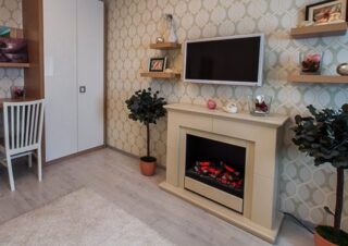 - Le type conventionnel est un foyer électrique dont le design se présente sous la forme d'un écran. La combinaison avec une étagère est autorisée.