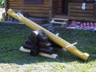 Ce type de construction est utile pour un petit enfant. Pour sa fabrication, on utilise un support et une bûche (planche épaisse) dont le principe de fonctionnement s'apparente à une bascule à bascule. Pour que l'élément en bois tourne, vous avez besoin d'une barre en métal et de rondelles. Pour plus de sécurité, une poignée est fixée devant le siège pour que les enfants puissent s'y accrocher.