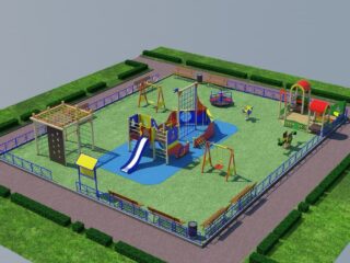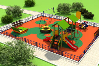 Les dimensions du complexe de cour de jeux sont faites en fonction de l'âge des enfants, en tenant compte de la superficie du bâtiment résidentiel à côté du site.