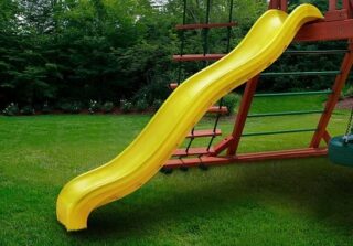 Le cadre doit être stable et solide, souvent plusieurs personnes se rassemblent en haut du toboggan. Sur les escaliers, les passages et les quais, une main courante doit être aménagée pour la sécurité. La surface pour la descente est faite de matériaux lisses, le plus souvent ils mettent des tôles en acier inoxydable ou du bois dur poli. Placez les toboggans de manière à ce qu'il y ait une place devant pour que le bébé s'arrête après avoir roulé.
