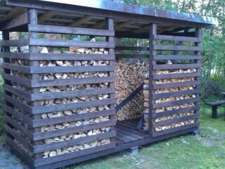 Un bois de chauffage fixe est érigé à partir d'un tuyau profilé, d'un canal, d'un treillis. Il est préférable de prendre des tuyaux galvanisés, car ils ne se prêtent pas à la rouille. Le filet est suffisamment solide pour contenir du bois de chauffage et offre une excellente ventilation. Le grillage doit être peint pour le protéger de la corrosion.