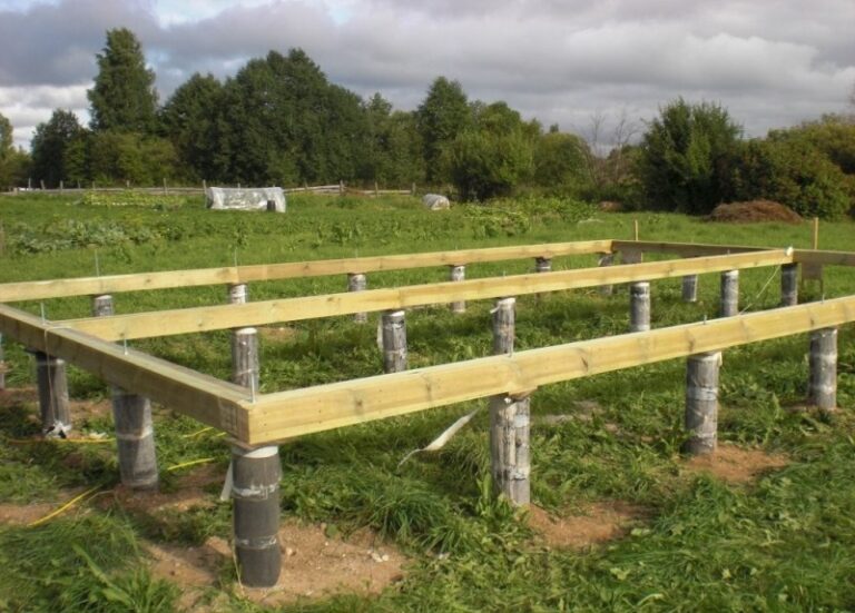 - Les bûches ne doivent pas être stockées sur le sol ou sur une zone en béton. Par conséquent, même un simple auvent devrait avoir une fondation. Le plus simple est réalisé - en colonne. Pour cela, des fosses sont creusées dans les angles du chantier, des boutures de tuyaux en amiante-ciment sont installées et bétonnées.