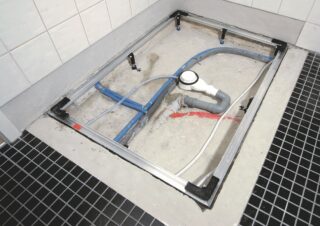 Les versions sans palette sont montées directement au sol et nécessitent donc des travaux de drainage particuliers. De plus, un sol froid et glissant peut occasionner quelques désagréments aux utilisateurs. Il est recommandé de poser du carrelage antidérapant dans l'espace douche et d'équiper cet espace d'un système "sol chaud".