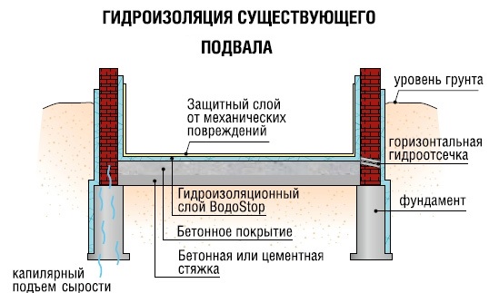 L'imperméabilisation du sous-sol d'une maison en briques de l'intérieur résout les tâches suivantes: