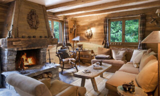 - Suisse ou alpin - une combinaison de design de style chalet et de technologie moderne. Le modèle Alpine est placé au centre de la pièce, le capuchon est fixé au plafond, et les parois latérales sont souvent absentes. Le foyer est garni de pierre texturée imitant un matériau naturel non fini. Les garnitures du capot et de la base sont volontairement rugueuses.